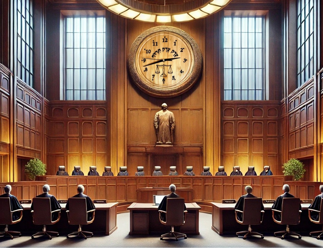 שעון עץ הזית נמכר עבור מתנה לשופט שהתמנה לתפקיד בארצות הבריתתמונה בעזרת AI השעון שבניתי הוטמע מעל השופט בבית הדין הפללי בהאג